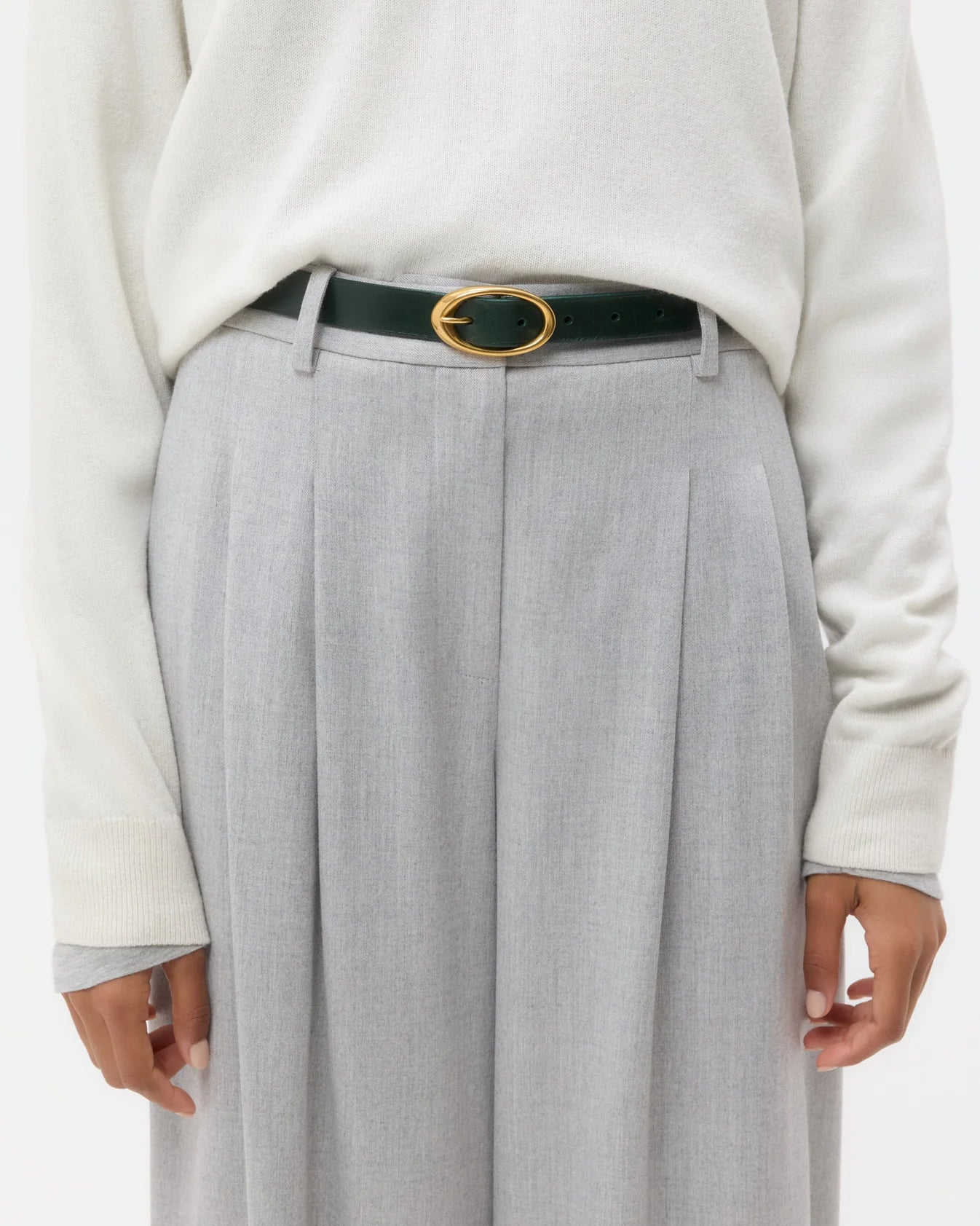 Our Gia Belt is crafted from smooth green leather with our uniquely twisted hardware carved from antique brass. With a sleek silhouette, it’s the perfect finishing touch to accompany our collection’s dresses, tailoring, and handcrafted denim