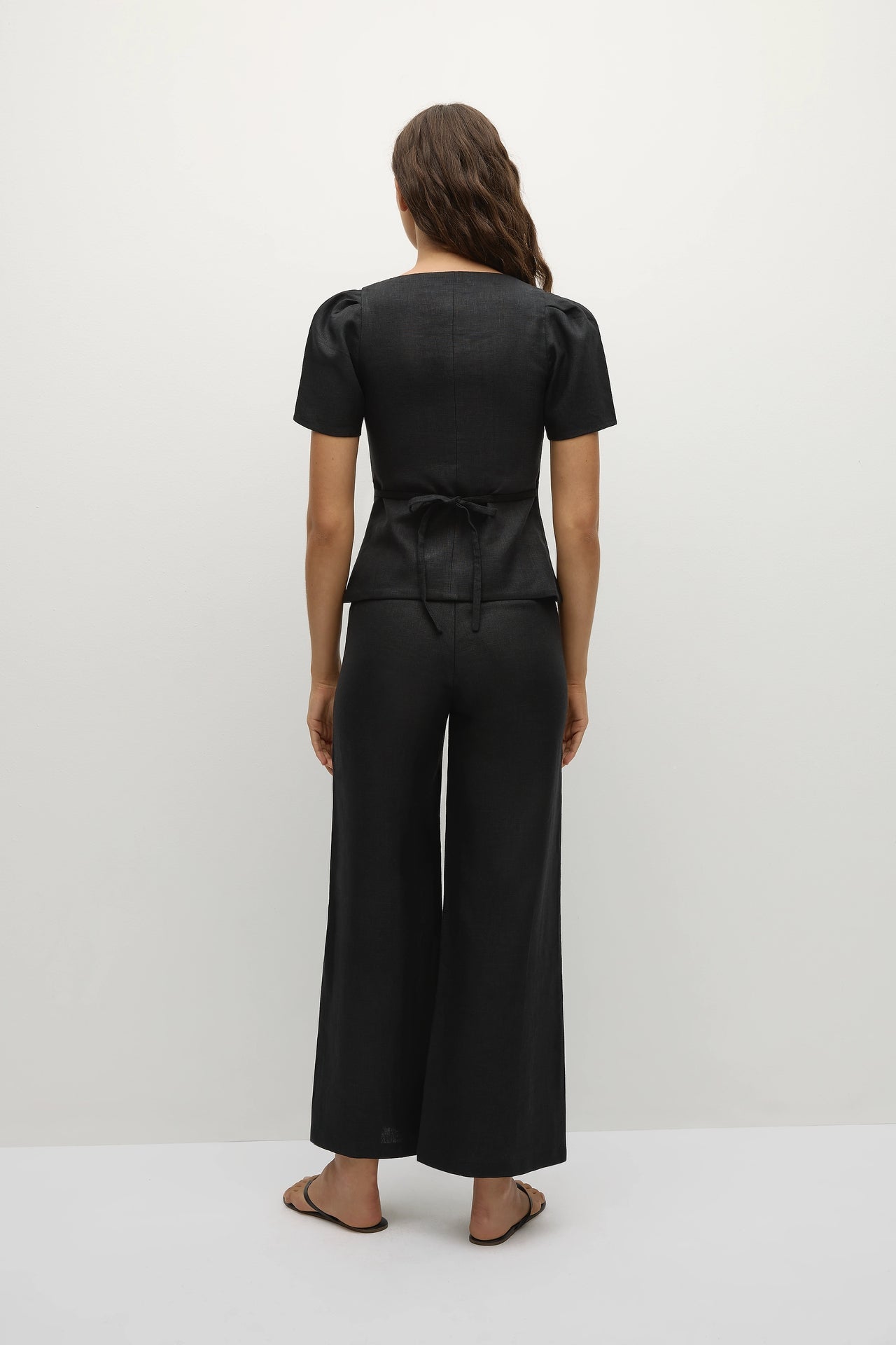 A signature FAITHFULL silhouette, reimagined with new elevated details and designed from a 100% European Flax® linen fabrication. They are a simple, everyday pant that sit high on the waist with an invisible zipper at the centre back. Leading into a wide leg with a flared hem and offered in a classic black colourway, they are the perfect addition to a capsule wardrobe