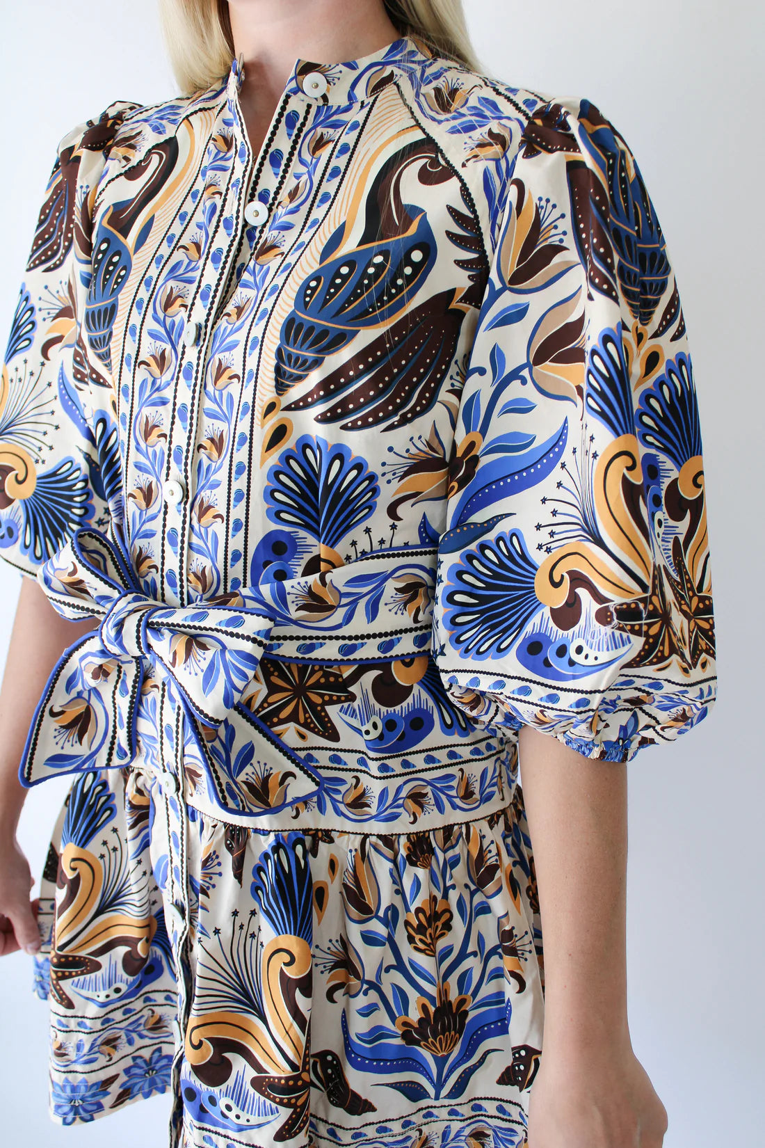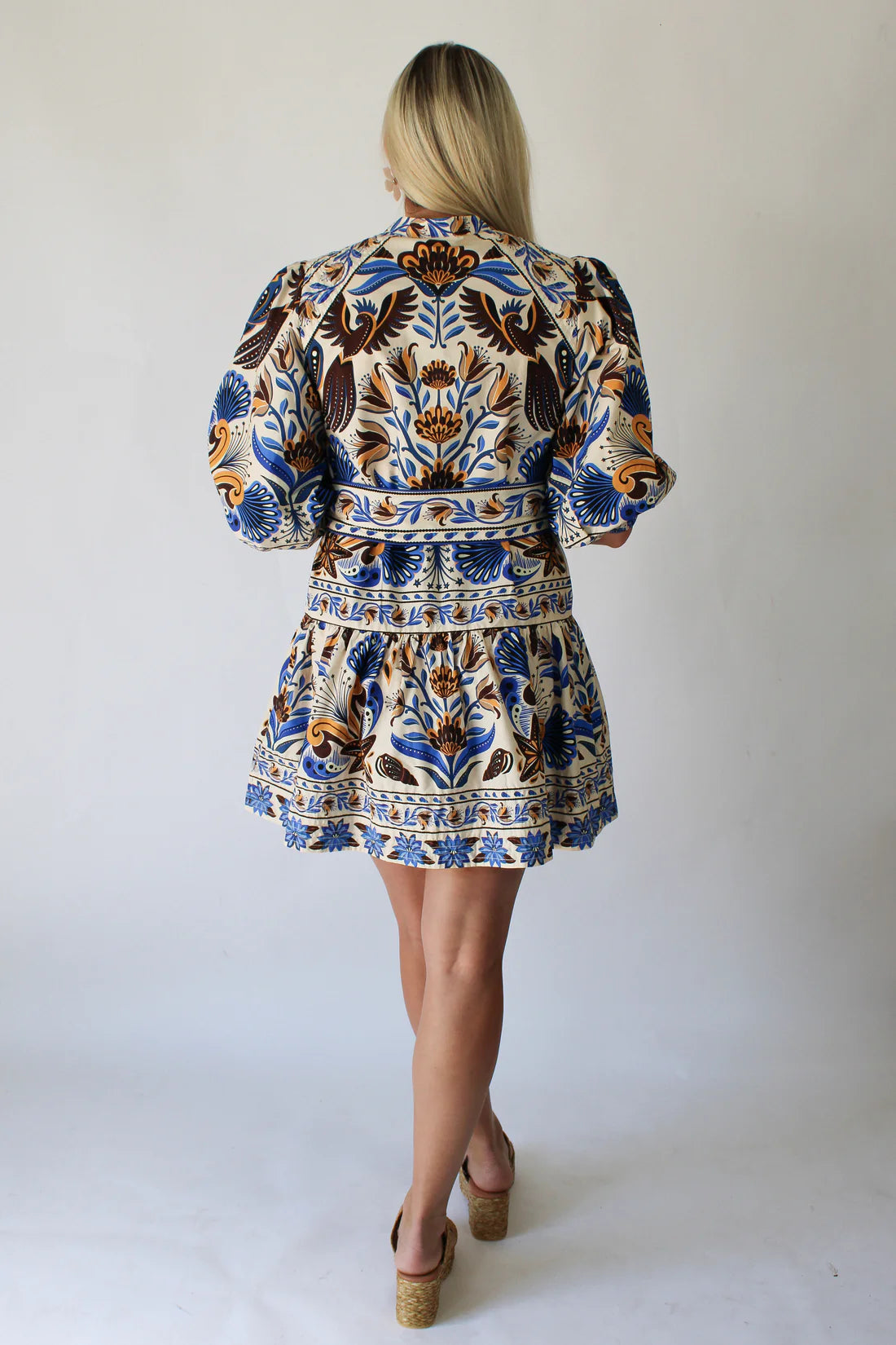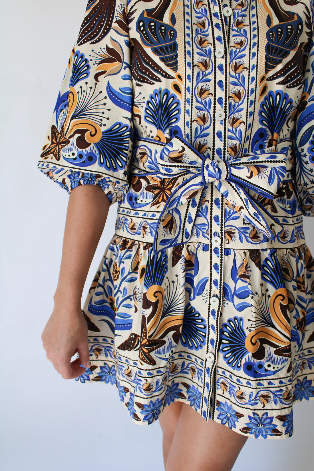 The perfect little flirty mini dress - featuring puff sleeves, buttons down the front and a sweet waist tie