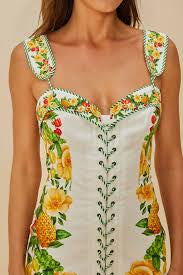 The Off-White Picnic Flowers LENZING™ ECOVERO™ Euroflax™ Mini Dress is a delightful blend of color and charm, perfect for sunny adventures. Featuring a sweetheart neckline and vibrant floral patterns, it captures the essence of a bright, playful garden. Crafted from responsible materials, the dress embraces elegance with its fitted silhouette and lively design, ensuring you feel both confident and carefree in any sun-drenched setting.