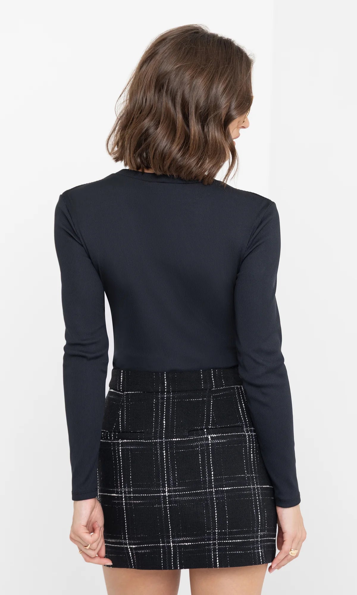 Gold buttons provide a stylish finishing touch to this fine rib jersey top. A wardrobe essential, it pairs perfectly with skirts, jeans, or tailored pants for an effortlessly stylish look.