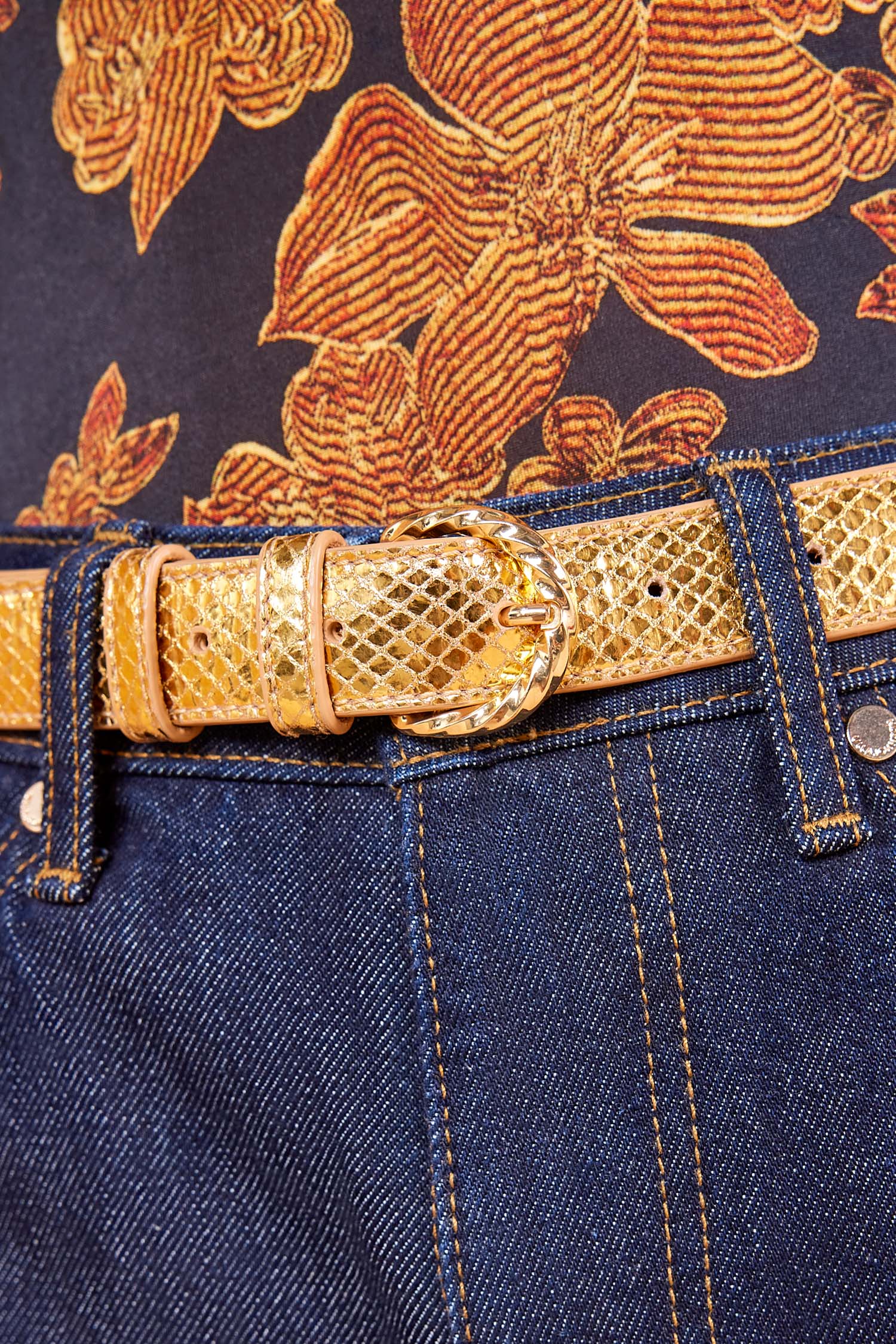 Our Gia Belt is crafted from luxe, python-embossed leather with our uniquely twisted hardware carved from antique brass. With a sleek silhouette, it’s the perfect golden touch to accompany our collection’s dresses, tailoring, and handcrafted denim.