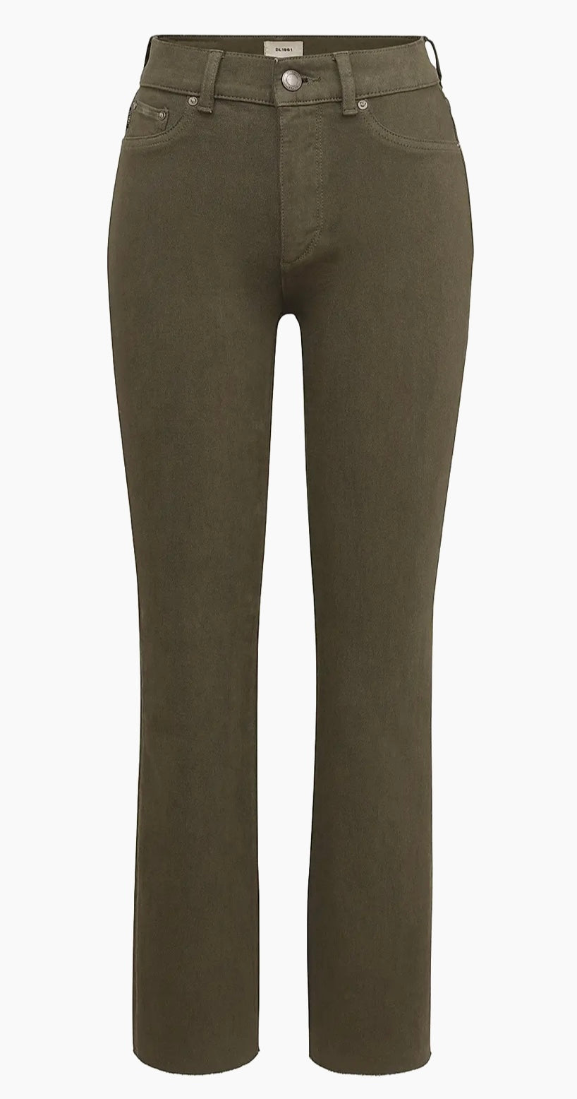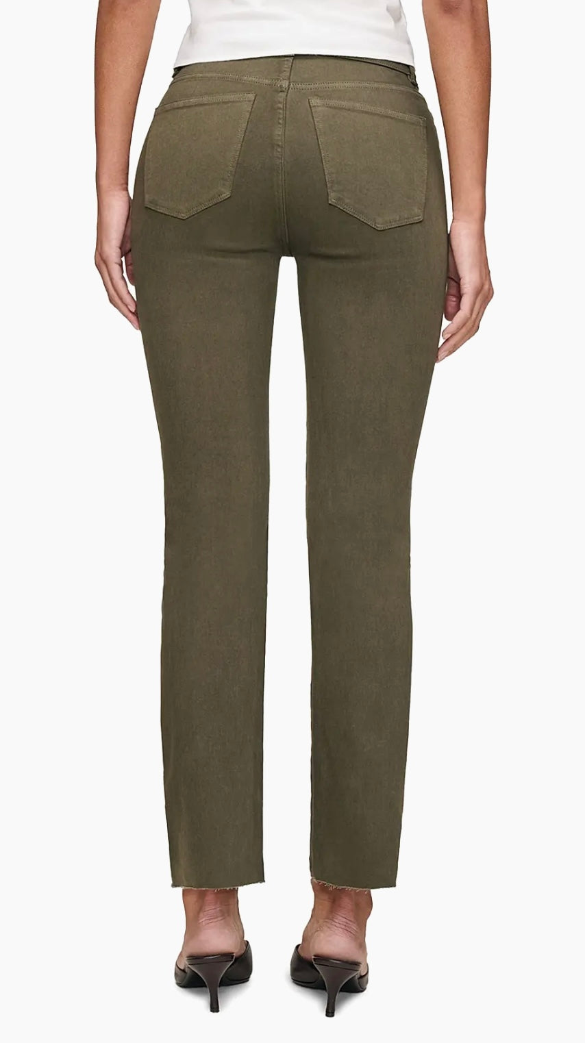 Mara is a mid-rise, ankle length straight leg fit that utilizes our Instasculpt technology to smooth, sculpt, and conform to your body for the perfect fit. Trellis is a muted, earth green denim. It features silver hardware, tonal stitching, a raw hem and a black back patch.Creates a smooth and sculpted effect by combining high-retention stretch technology with certified cotton that looks airbrushed but maintains flexibility.