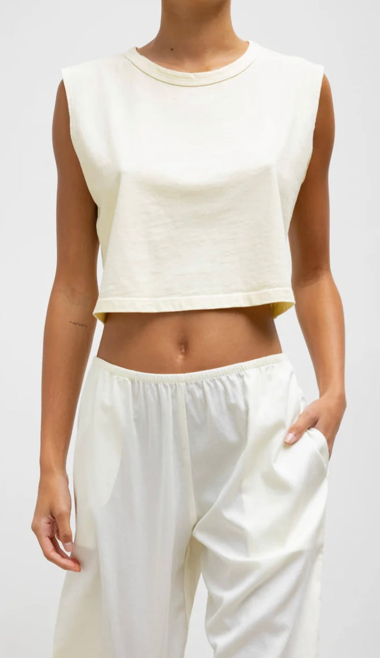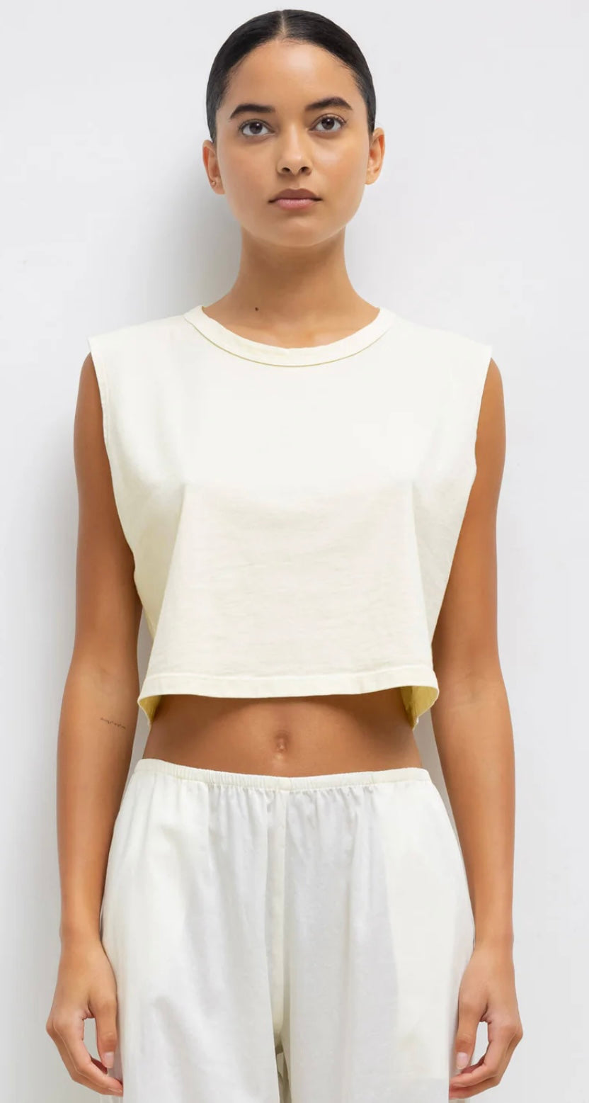 Our no. 1 bestselling t-shirt, The Margo, now in a cropped and sleeveless option. The Crop Sleeveless Margo is a classic crewneck silhouette that strikes the perfect balance between a tailored and relaxed fit.