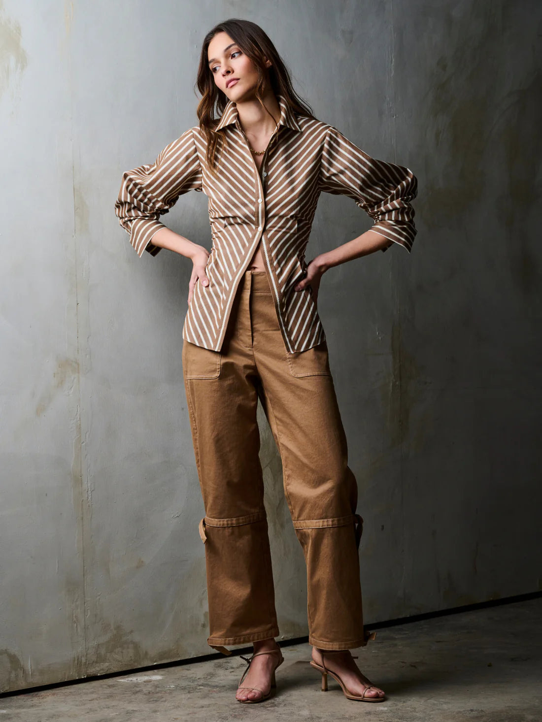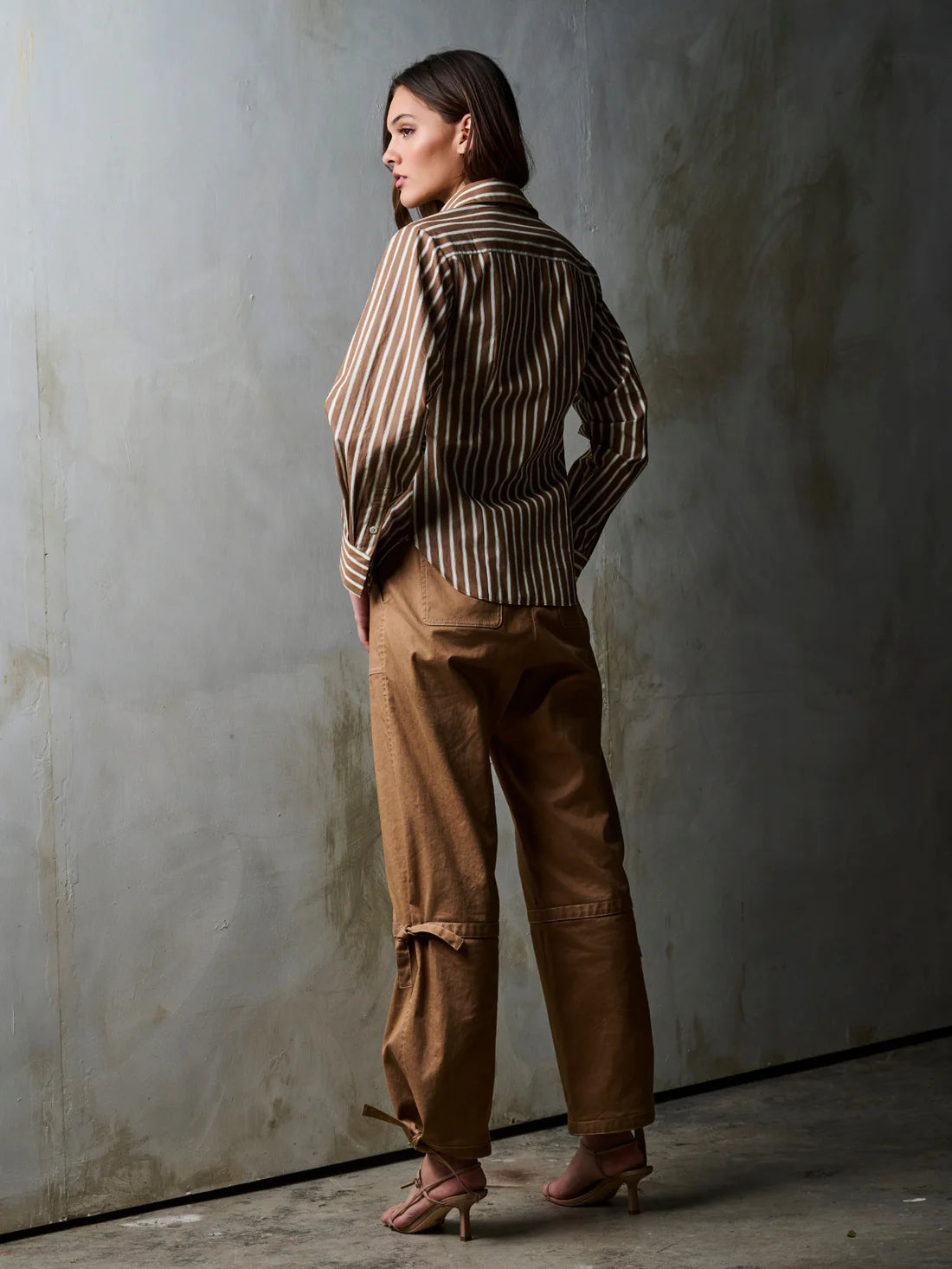 A modern shirt with unexpected proportions. The Drexel is cut from crisp cotton poplin with a clean collar, structured sleeve pleats at the elbow for subtle volume, and a partially buttoned front that opens at the hips—allowing the long-line shape to move with ease. Tailored meets off-duty in the best way.