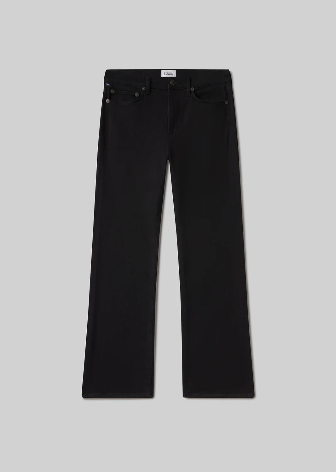 A low-rise bootcut pant crafted from signature cashmere-blend denim for a super-soft hand. The silhouette fits true to size and falls to a full-length bootcut. Clean black denim makes it a versatile staple—pair with an oversized sweater and heeled boots for weekend casual, or a silky blouse for a night out