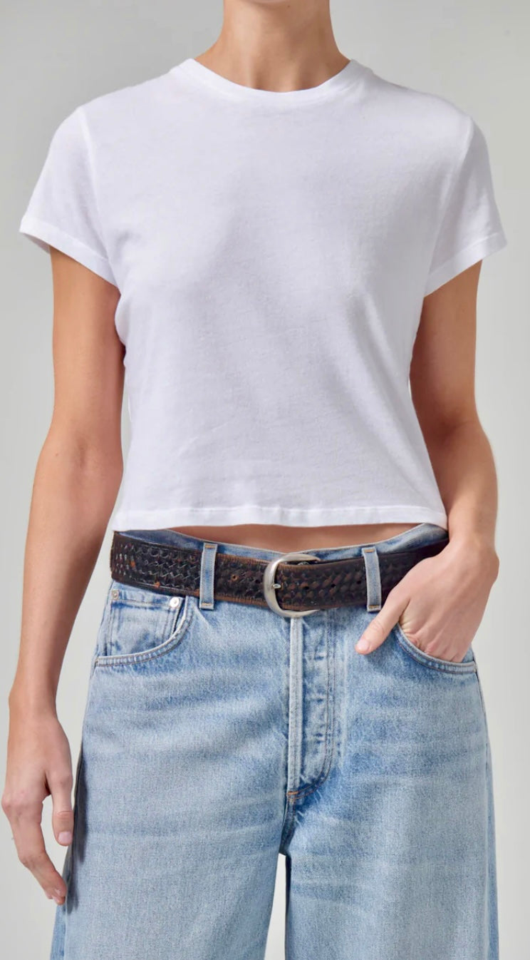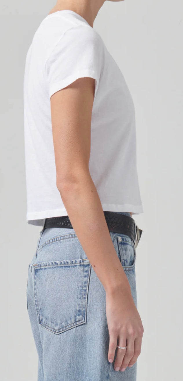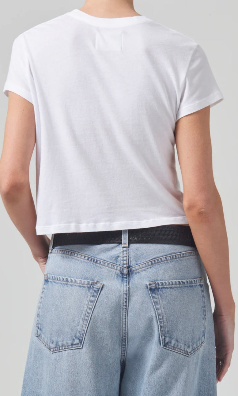 Effortless essential. The Kyle tee is the closet must-have designed to be worn season after season. The slightly cropped boxy fit styles perfectly back to your favorite high-rise denim cut-offs.
