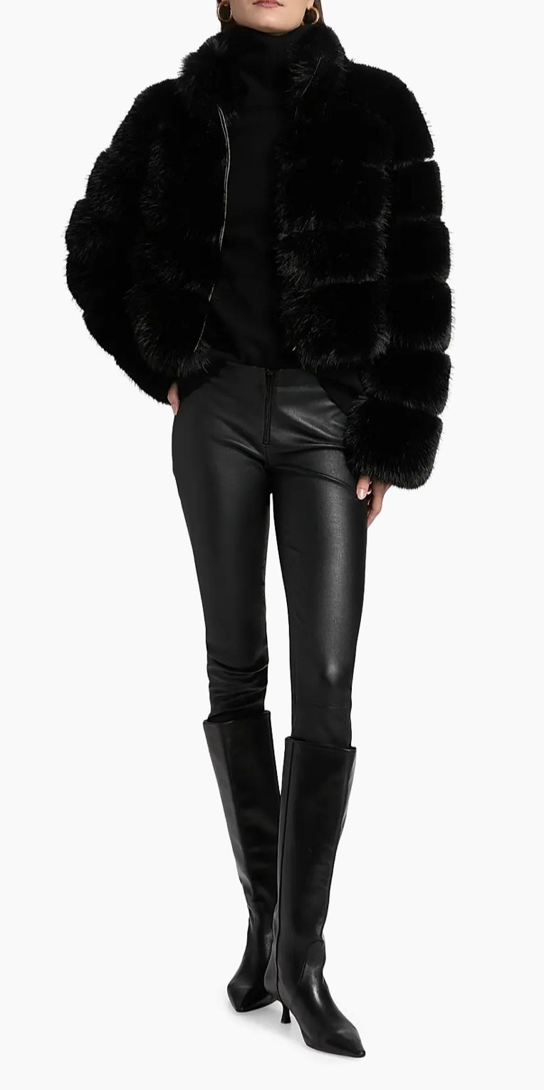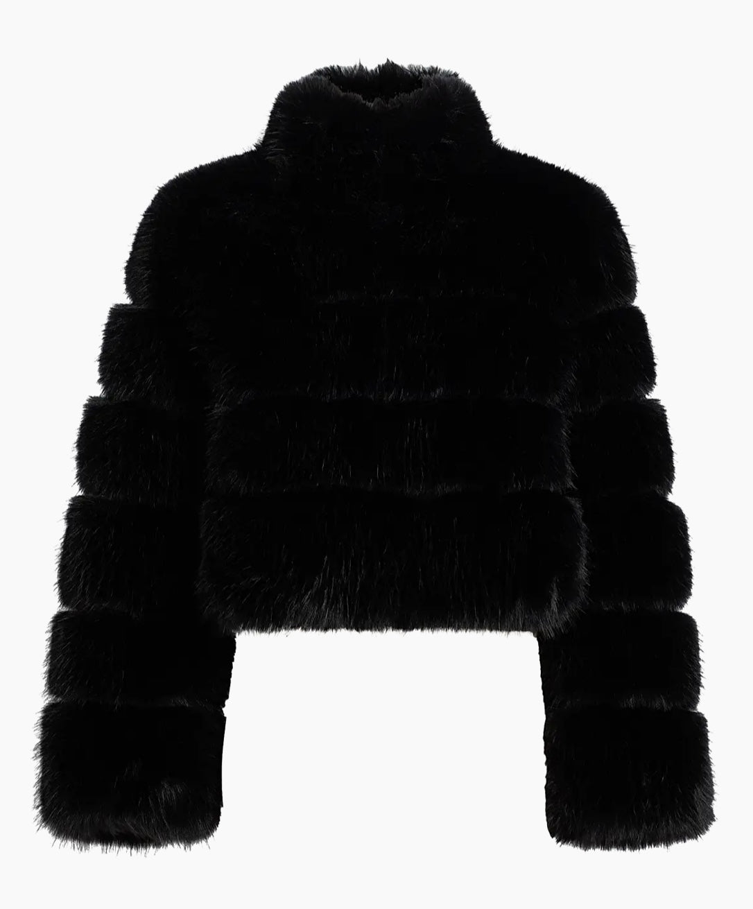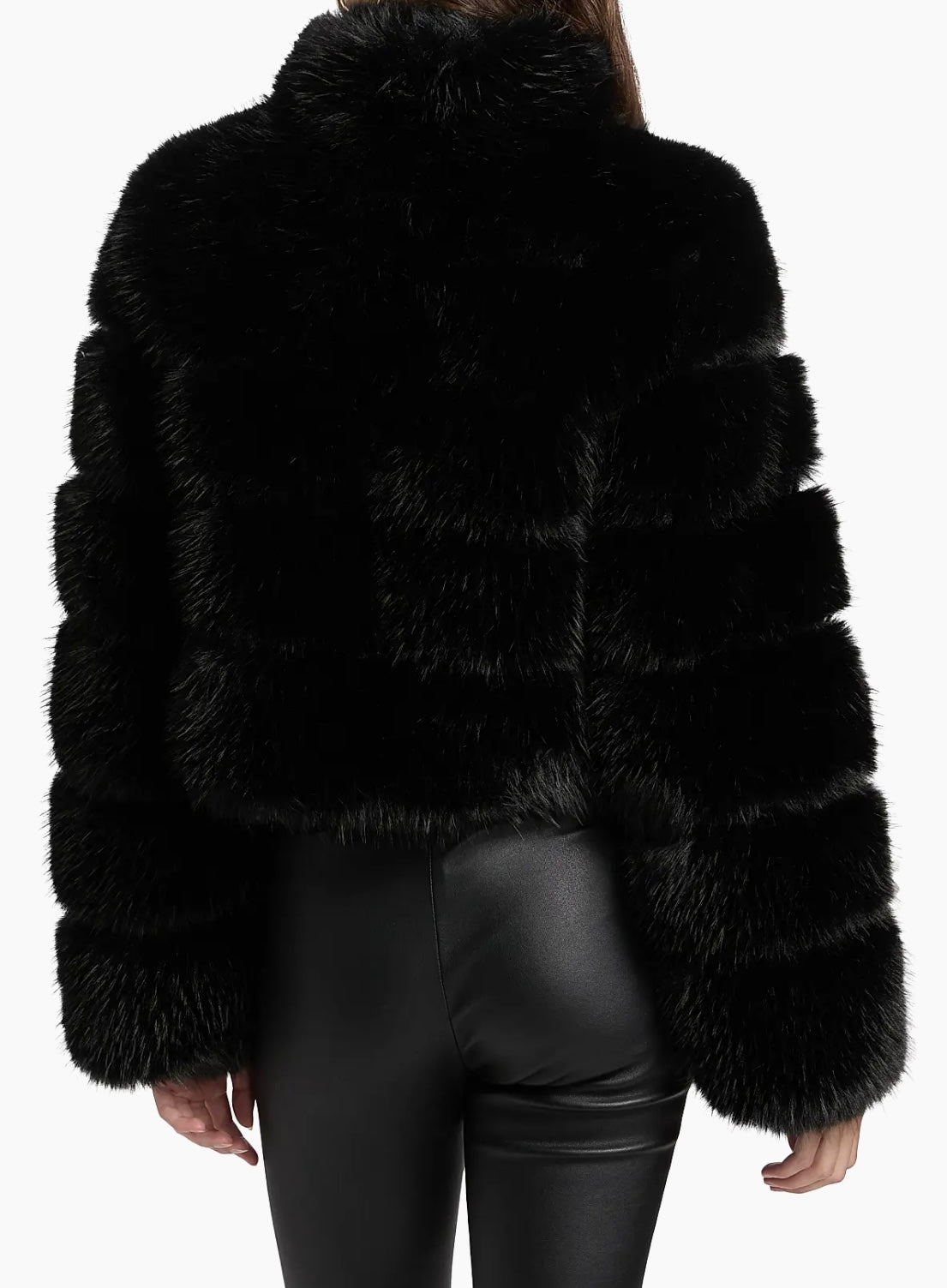 Generation Love's Lyla faux-fur jacket features a stand collar, long sleeves, and a front zipper.