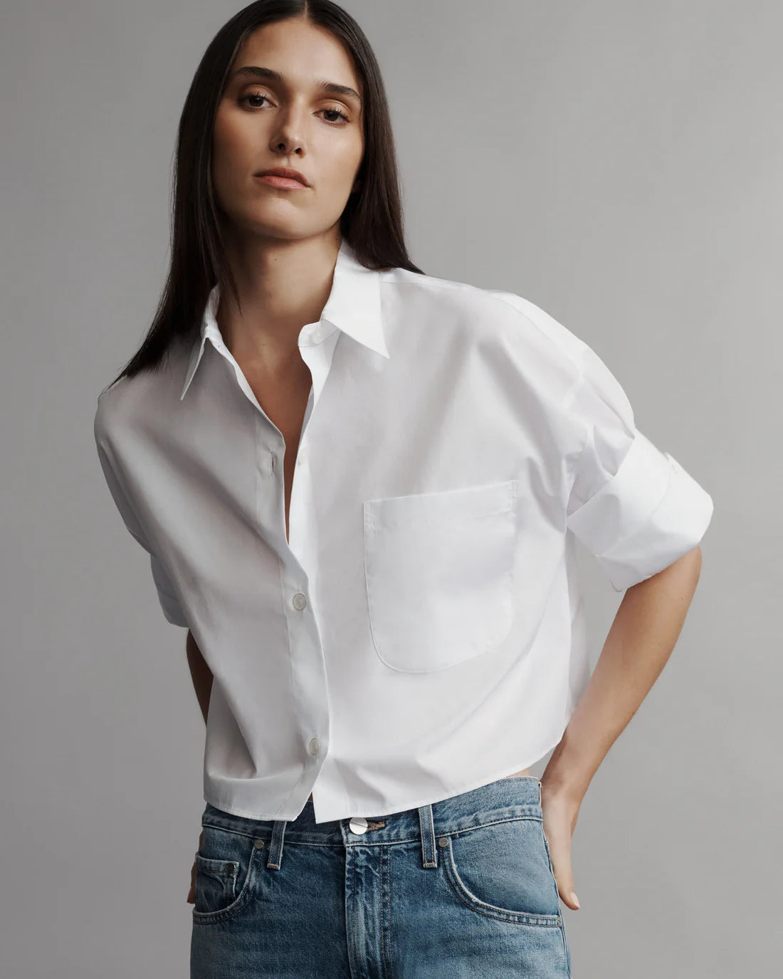 - TWP’s signature short sleeved button down crafted in superfine Italian cotton shirting. The Next Ex is a cropped, boxy silhouette, complete with a chest patch pocket, button up placket, spread collar, and our signature double roll button cuffs.
