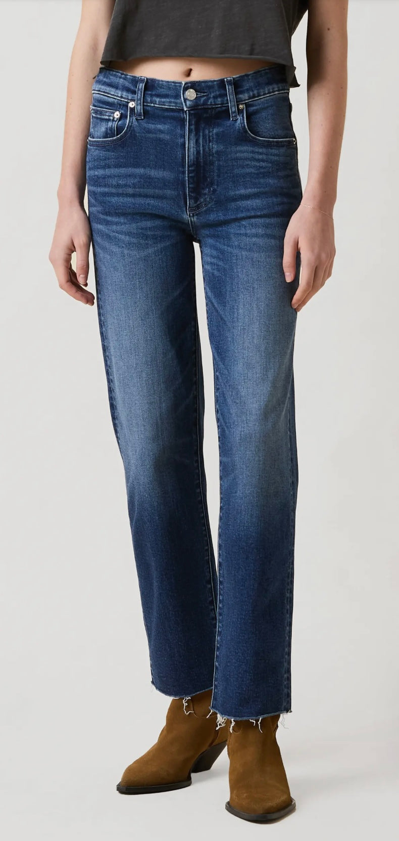A clean look for casual-chic outfits, these slim-cut, ankle-grazing straight-leg jeans are made from supersoft stretch denim in a versatile dark wash.