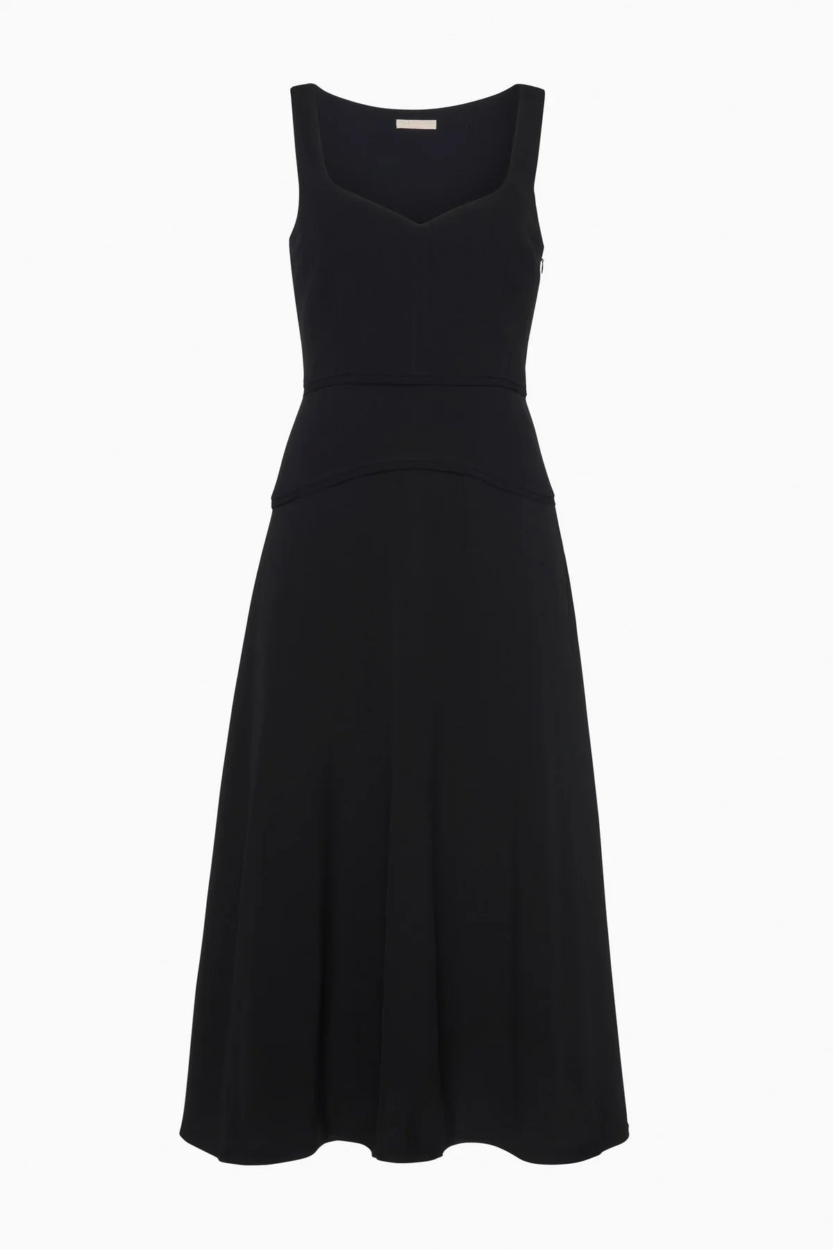 Timeless in form, the Vivi Midi Dress is crafted from signature satin-back crepe in black for refined, wear-everywhere ease. The sweetheart neckline elegantly frames the bust, while the tonal seam detailing adds an elevated finish to this classic midi.