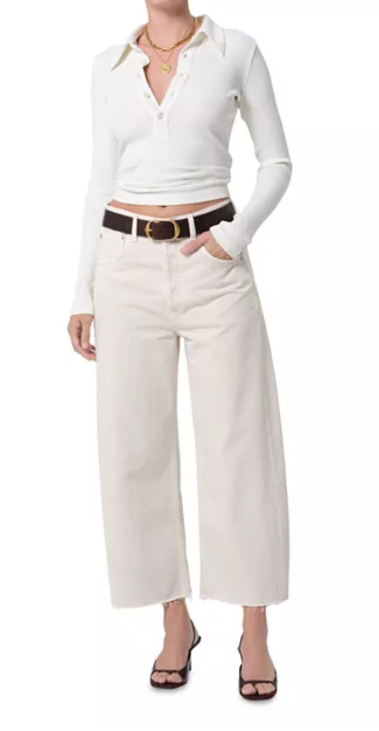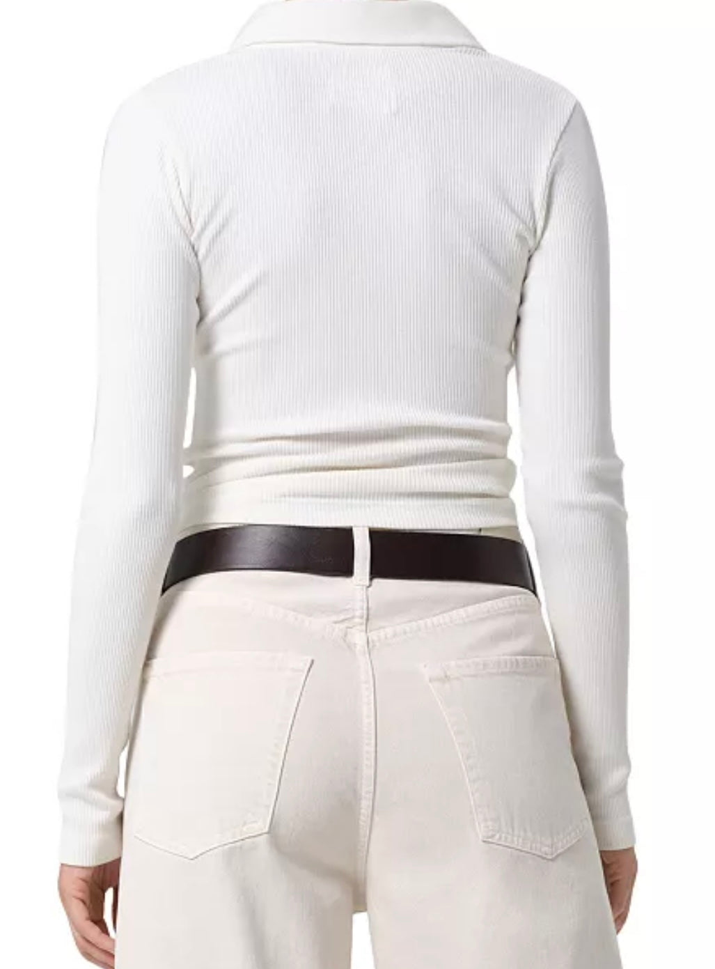 A long-sleeve polo crafted from ultra-soft, supportive ribbed cotton with a comfortable midweight feel. The fit is true to size. Wear alone with high-rise denim for everyday ease or layer under a blazer for a refined look.