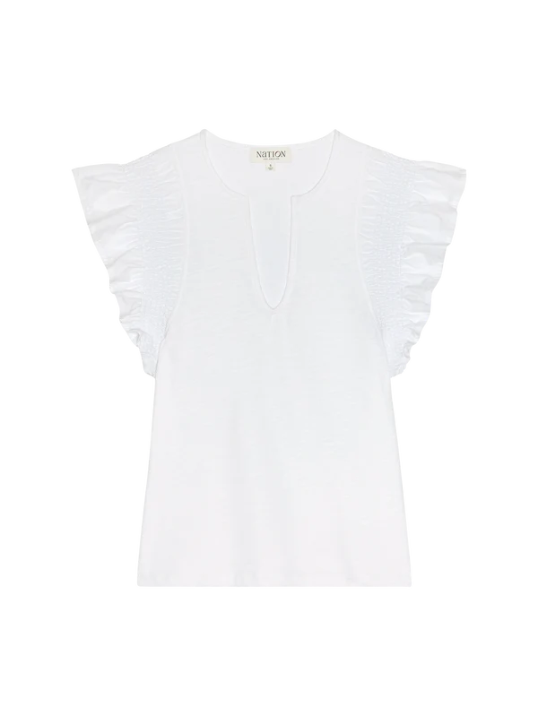 Totally timeless in the sweetest of all silhouettes, the Christa is cut from our structured Heavy Slub fabric with flutters sleeves and a keyhole neckline. This one comes in Optic White.