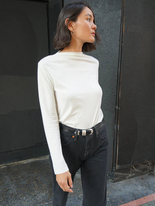 Whether you’re staying in or constantly on the move, the Kristen Tee keeps up. Made from luxe jersey with soft shirring, this polished staple drapes just right in our classic signature fit. A mock neck and long sleeves mean you’ll be reaching for this piece all the time