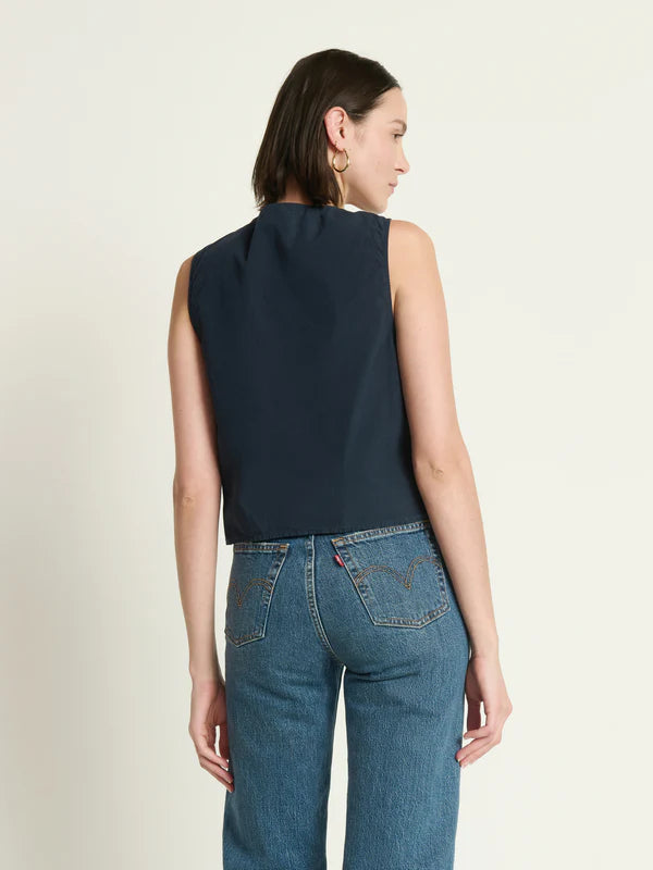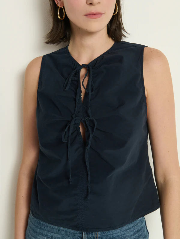 A sleeveless tie-front top that will be your go-to for girl's night out or brunch the next morning. Crafted from our midweight Paper Touch Cotton Poplin. This one comes in Navy Night Sky.