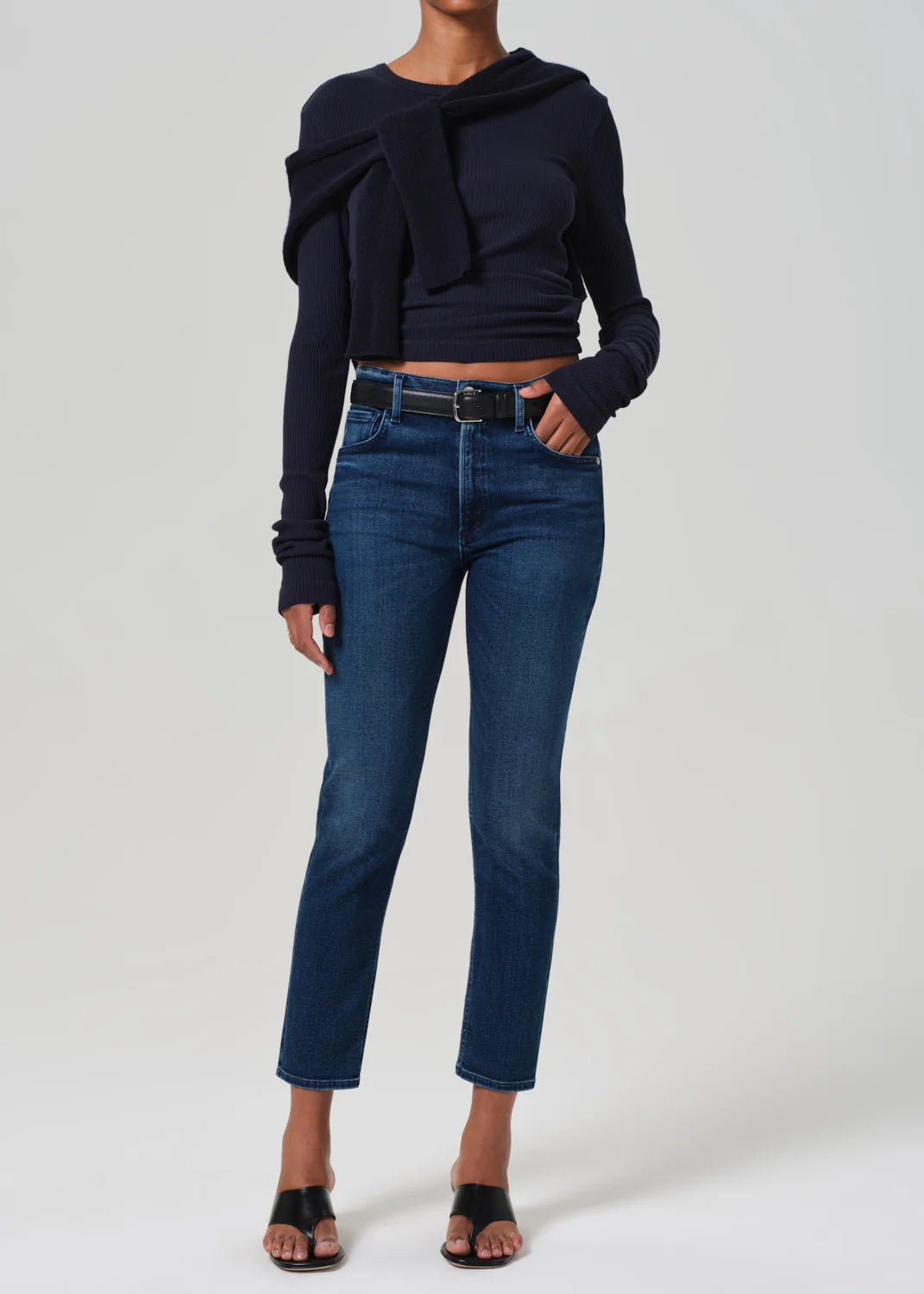 A mid-rise and an ultra-flattering top block. Designed with a slim fit to the knee and a 26” inseam; these jeans can be styled with just about everything.