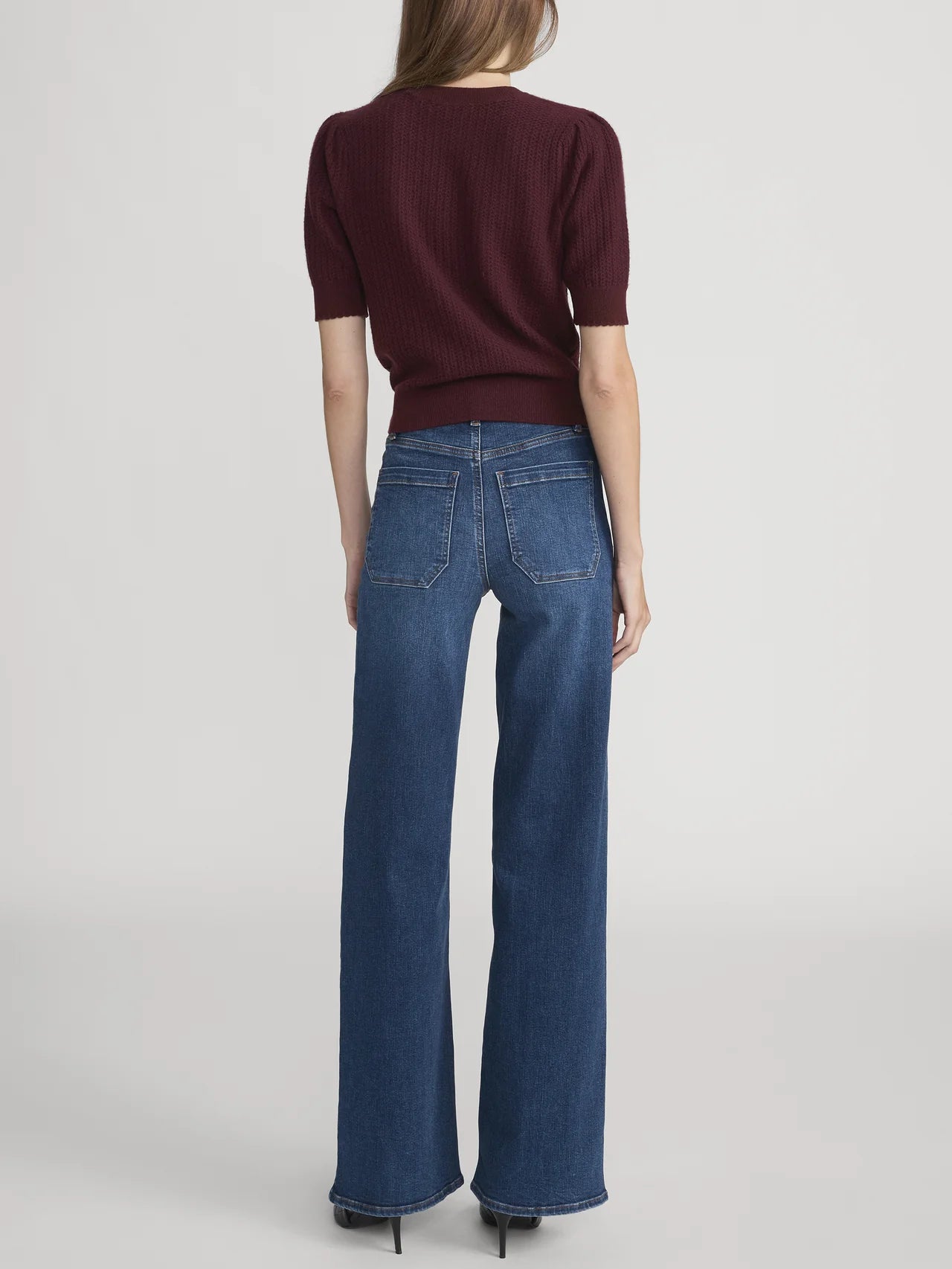This bestselling silhouette has a flattering high-rise waist, fitted hip, and subtle wide-leg flare that hits at the floor. Crafted from a sustainable super-stretch cotton blend and finished with chic front pockets.